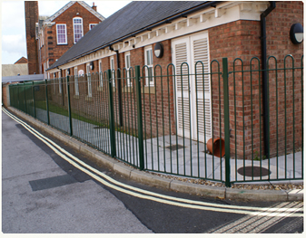 Bow Top RailingsBow Top Railings are a popular choice for schools and pedestrian areas. They can be stepped or cranked to suit site conditions and are secured in concrete All posts come with welded steel caps. A range of post head details available for all railings as an optional extra. Available in many different colours, and can be RAL matched. |