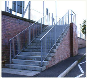 Hand RailingsOur hand railings can be fitted in two styles -Balustrade and Key Clamp. Both styles give a solid railing and can be run down steps. |