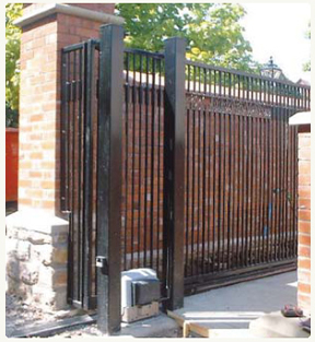 Cantilever System Cantilever system is a slide gate but without the track running underneath the gate. Balanced on a rail, the gate is held by is own weight. Perfect for areas where a track will obstruct. |