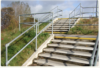 Hand RailingsOur hand railings can be fitted in two styles -Balustrade and Key Clamp. Both styles give a solid railing and can be run down steps. |
